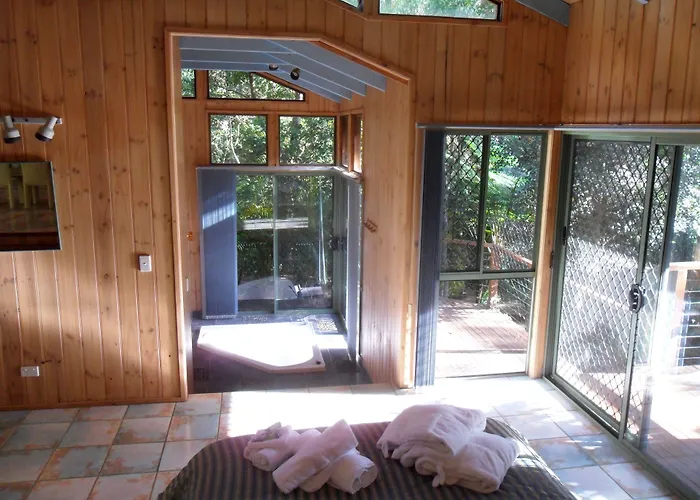 O centro de Montville pode ser alcançado em 20 minutos a pé, e atrações naturais como Blackall Range estão a 3.6 km de distância. Pode chegar ao centro de Montville em 20 minutos a pé. Também pode chegar facilmente aos Cataratas Kondalilla, que está a 7 minutos de distância a pé. Treetops fica perto da paragem Flaxton Drive at Kondalilla Falls Road.